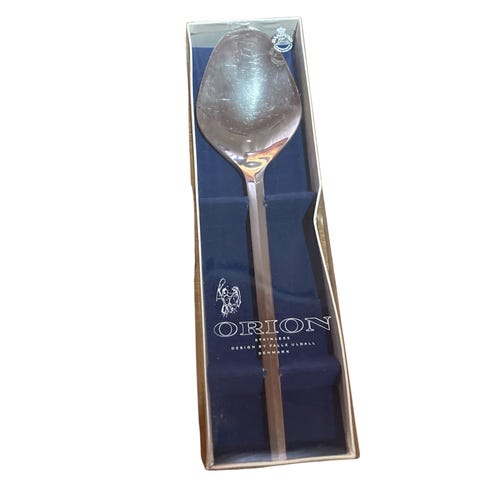 Original æske med 4 stk rustfri stål kage gafler - Model Orion, designet af Falle Uldall i 1960-70 erne.