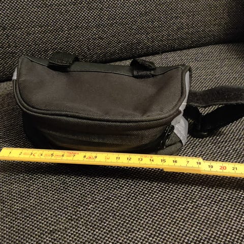 Sender ikke. Rigtig fin ig let cykeltaske i sort og grå. Hae 1 lynlåsrum. Har velcrobånd til montering på stel. Den er som ny