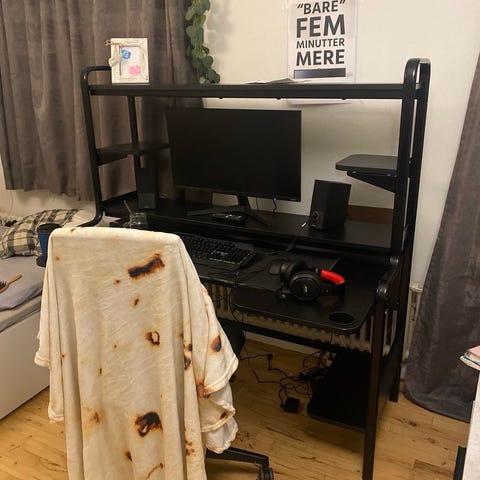 Vi sælger dette gamerbord (billede er fra IKEA) med god plads til skærme og andet udstyr. Mærket er Fredde fra IKEA.