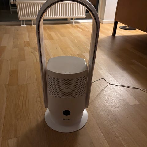 - Den står på en stabil, vinkelbar ramme, så luftretningen kan justeres efter behov. Strømtilslutning via almindelig netledning med stik.