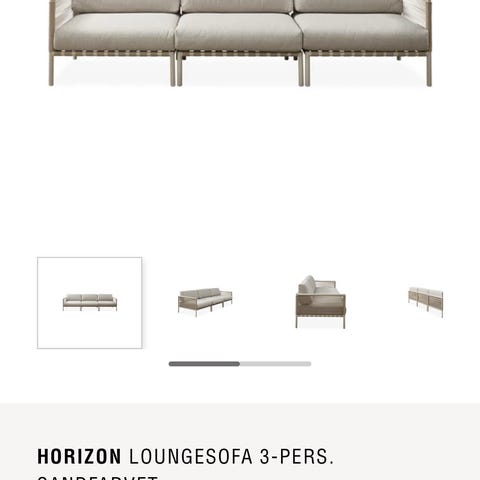Udendørs 3-personers sofa med flettet ramme og lyse hynder. Sofaen har tre separate sædehynder og tre ryghynder, som giver plads til tre personer. Stellet er i mørk farve med slanke ben, og siderne er udført i flet, der giver et let og åbent udtryk. Sofaen er egnet til brug på terrasse, altan eller i have- og loungeområder udendørs.