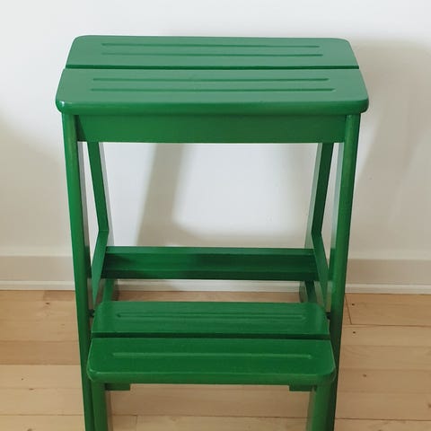 Hvid skammel i træ med ekstra trin. Skamlen har rektangulær siddeflade med udskåret bærehul i midten, som gør den nem at flytte rundt med, mål 24×36 cm Nederst er der et ekstra trin, mål 13x41 cm. Velegnet til brug i f.eks. køkken, bryggers eller børneværelse som hjælp til at nå hylder og skabe. Mål: Dybde: 39, bredde: 43, højde: 50.