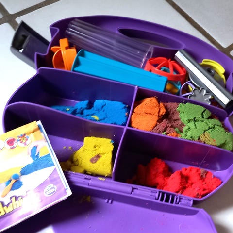 Kinetic Sand legesand sæt i flere farver. Sættet indeholder modellérbar sand, der kan formes til blandt andet sandslotte og figurer. Egnet til børn fra 3 år og opefter og kan bruges til kreativ leg indendørs. Leveres i æske og beholder, som gør det nemt at opbevare sandet mellem legesessioner.