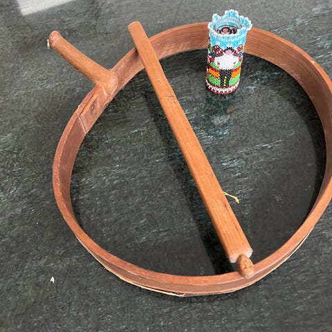 Håndlavet tromme til dekoration, diskret størrelse virker godt til vindueskarm, bordtop eller hylde.