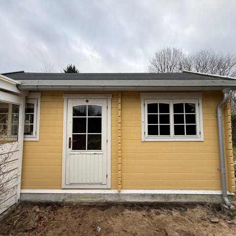 Modulskur 3 x 8,5 m istandsat for 2 år sælges pga flytning , incl . Luft til luft varmepumpe