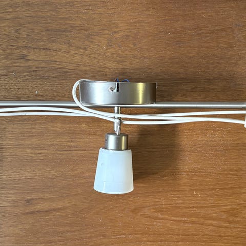 Loftlampe fra IKEA, model T1107 TIDIG. Lampen har 5 justerbare spots, der giver mulighed for at rette lyset. Den er designet til GU10 halogenpærer, maks. 35W. Pærer medfølger.