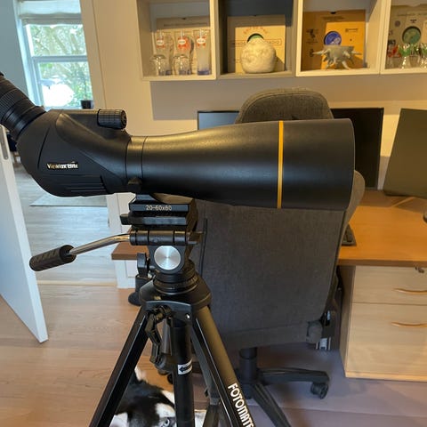 Sahara 20-60x80 udsigtskikkert med variabel forstørrelse fra 20x til 60x og 80 mm objektiv. Kikkerten leveres med bæreetui. Medfølgende stativ er et Fotomate Video Foto Tripod VT-5006, som giver stabil opstilling af kikkerten til f.eks. natur- og fugleobservation eller udsigtsbrug.