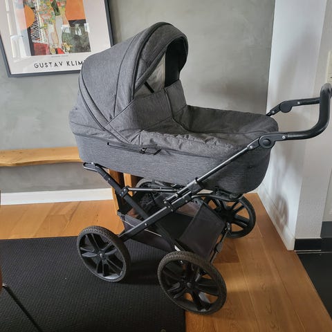 Barnevognen er kun blevet brugt til et barn. Den har altid stået opbevaret indenfor, og fremstår yderst flot og velholdt, uden mug eller pletter, mm.