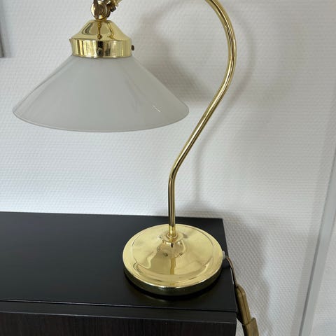 Bordlampe på messing fod og med glasskærm,afbryder på ledningen