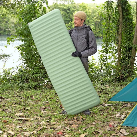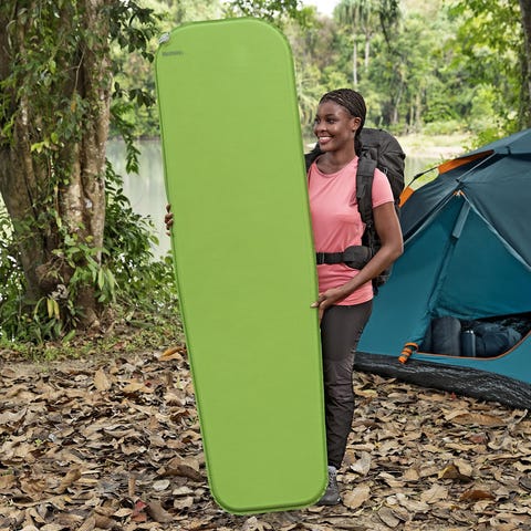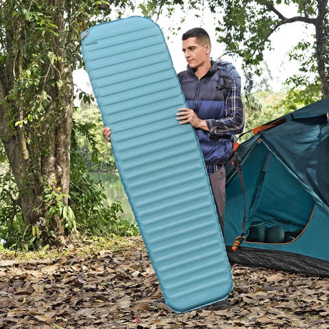 Helt nyt selvoppusteligt liggeunderlag i stærkt ToughLite-materiale sælges (aldrig brugt). Oppustet størrelse er 198x63,5x10,8cm med en vægt på 2,42 kg. R-værdi på 9 betyder, at det er super godt isoleret og kan anvendes i kolde vejrforhold. Nypris 600 kr.