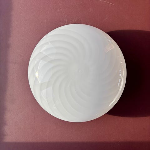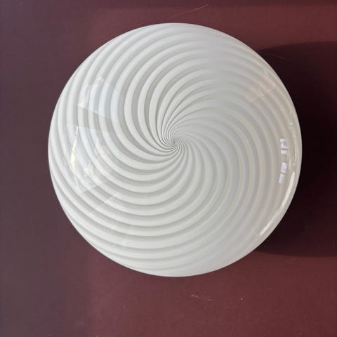Vintage Murano plafond med hvidt transperant swirl 30 cm
