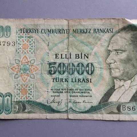 TYRKIET TURKEY YÜZ BİN 100000 LIRA 1996 - 1999 Mustafa Kemal Atatürk p206. Porto 25kr. Op til 100gram!