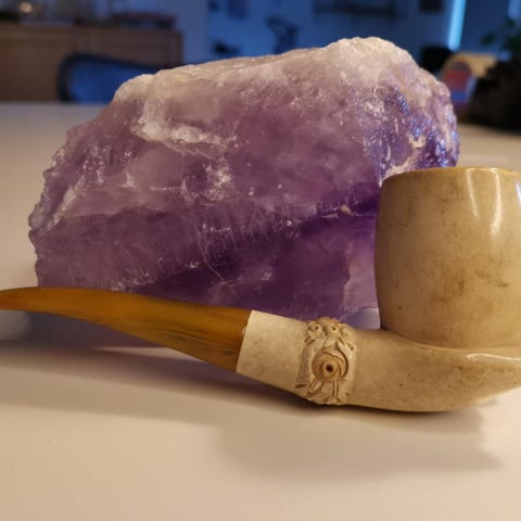 Der har være hul i pibespids, som er repareret med LOCTITE SUPER GLUE blandet med ravstøv. Farven ikke hrlt perfekt, men reparation holdbar.