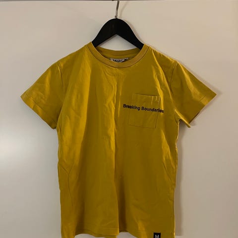 Næsten ny Molo t-shirt i bomuld i str. 116 til unisex. T-shirten er orange med stort tryk af tallet 3 på forsiden. Korte ærmer og rund hals. Velegnet som hverdagsbluse til børn.
