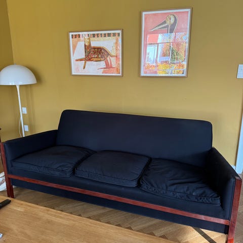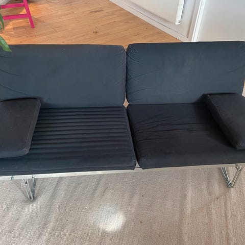 Vintage Ikea modulsofa i fyrretræ med hynder i skum. Betræk kan tages af og vaskes. I alt er der 6 stk. moduler med hynder til både ryg og sæder, som der kan ses på det sidste billede. Vi har dog kun brugt 5 stk. af modulerne og uden ryghynder.