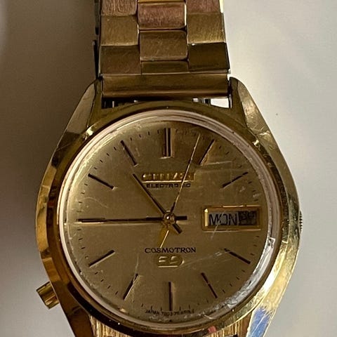 Herreur, Citizen, Virkelig flot vintage Citizen Cosmotron black edition i sjælden go stand. Den berømte 7908 model med hel unik teknologi til at stille dato og dag.