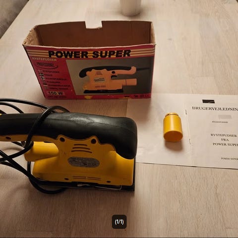 Sælger min toolmate rystepudser, med opsamler, og i egen kasse. Anvendes til at spænde sandpapir på og slibe møbler med.