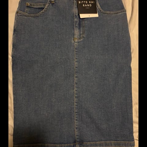 . Bitte Kai Rand nederdel til dame i størrelse XL. Den er i brun bomuld med kontrastsyninger og baglommer. Materialet er bomuld, som giver et blødt og behageligt stof velegnet til hverdagsbrug. Farven er brun, og pasformen er til kvinder i størrelse XL. Bitte Kai Rand denim nederdel til kvinder i str. XL. Nederdelen er fremstillet i bomuld og er brun med kontrastsyninger. Modellen har bæltestropper, forlommer og baglommer. Lukning foran med knap og lynlås. Velegnet som hverdagsnederdel i et enkelt og klassisk design. Længden er den er ca. 60 cm og str tilsvarende. Kan sendes med Dao for 43kr. Blev brugt kun 2 gange.