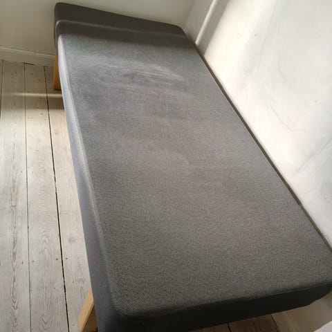 DUX seng i enkeltsengsstørrelse med træramme. Sengen har en lys træfinish og en lys madras/top. Velegnet som enkeltseng i soveværelse, gæsteværelse eller børneværelse. Klassisk, enkel ramme uden gavl, som kan placeres op ad væg eller frit i rummet.sælges for Lions Club Hellerup