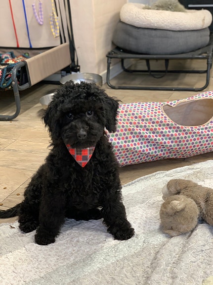 Deres mor er den sødeste Maltipoo (halv malteser og halv puddel) . Hun er testet for PL 0/0