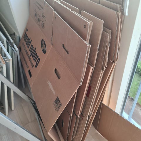 8 stk. kraftige flyttekasser fra Hjem&fiks, 584 x 372 x 374 mm, 7 mm tykkelse
