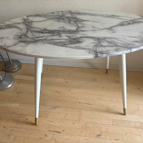 Rundt marmor spisebord gives væk. Vi skal bare af med det. Det fungerer fint, kan sagtens bruges. Diameter er 110 cm.