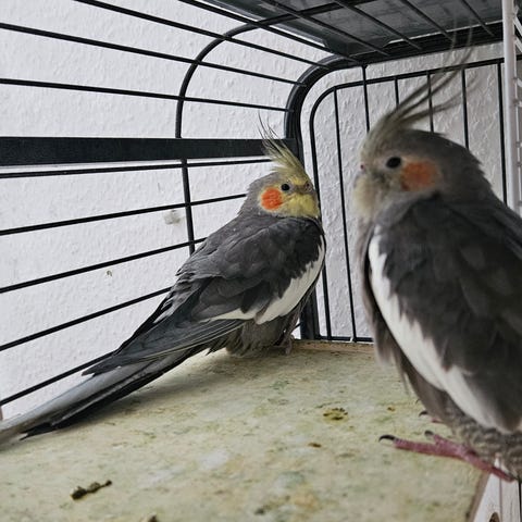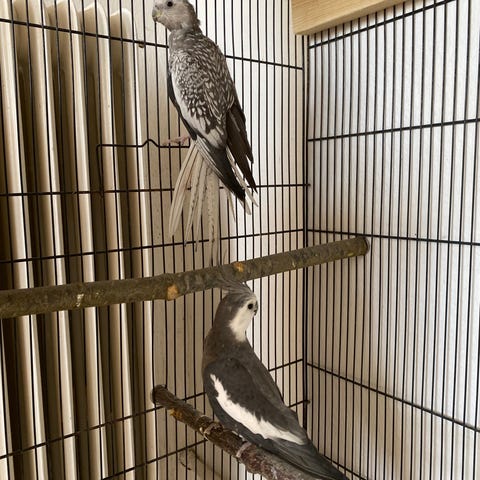Et par sælges. Hunnen er ikke helt tam endnu, hannen har været fuldstændig tam, men har ikke været så meget ude på det sidste. Bur og tilbehør medfølger. Sælges ikke til voliere.
