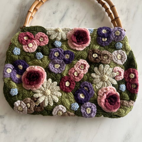Skøn lille vintage tapestry bag med både stof og læder🤩❤️🧡