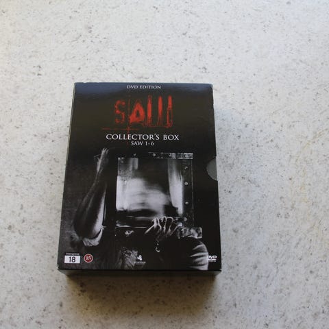 Komplet Saw film samling på DVD boks, DVD film og Blu-ray. Alle 10 film.