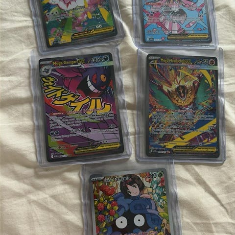 Jeg sælger mit Mega Diancie EX fra Ascended Heroes. Kortet er pack fresh og blev lagt direkte i en sleeve med det samme, jeg pulled det. Det har været opbevaret sikkert lige siden og fremstår i rigtig flot stand uden bends eller creases. Kortet kommer fra et røgfrit hjem og kan sendes sikkert og godt beskyttet. Ud fra standen vurderer jeg, at det har en 50/50 chance for en PSA 10, men det er selvfølgelig kun min egen vurdering. Skriv endelig for flere billeder eller hvis du er interesseret.