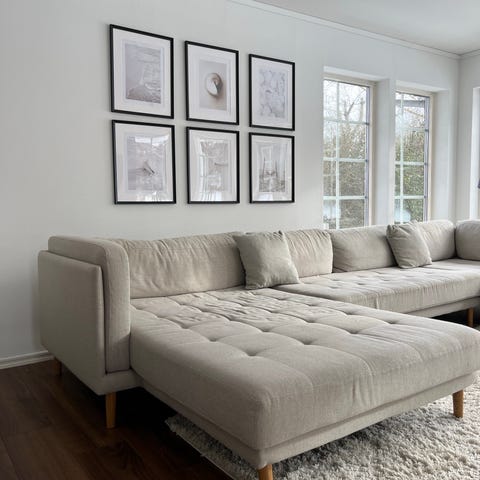 Venstre vendt chaiselong fra Møbelkompagniet. Ny pris 10.000 inkl. egetræsben. Farve: Hygge Beish. 2,5 år gammelt men har været opmagasineret i 1 år uden brug. Fin stand