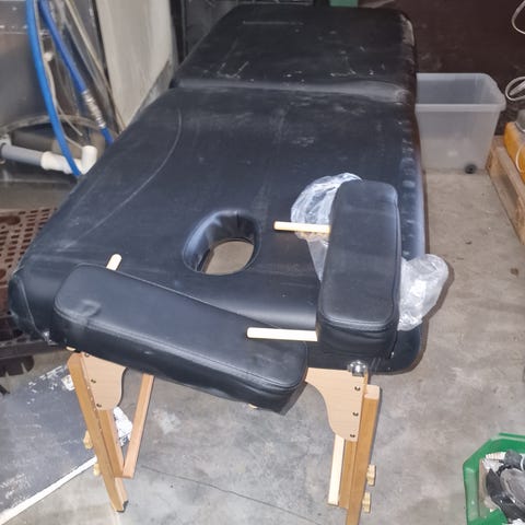 Sammenklappelig massagebriks i cremefarvet polstret overflade med træben. Briksen har aftagelig ansigtsstøtte og ansigtshul i liggefladen. Der er sidearmlæn og justerbare endestykker. Velegnet til massage, behandling og afslapning i hjemmet eller klinik, og kan foldes sammen for nem opbevaring og transport.