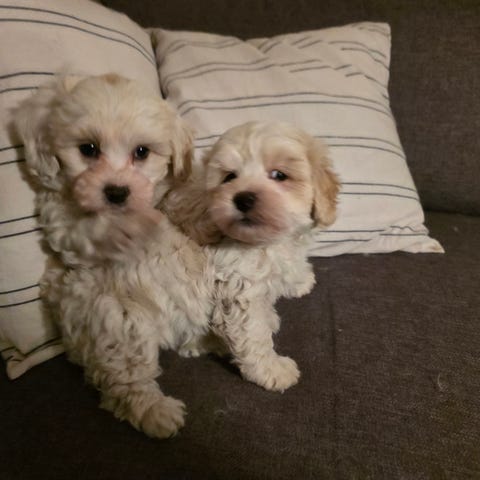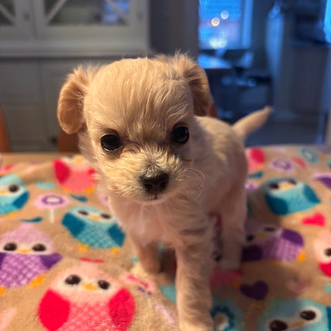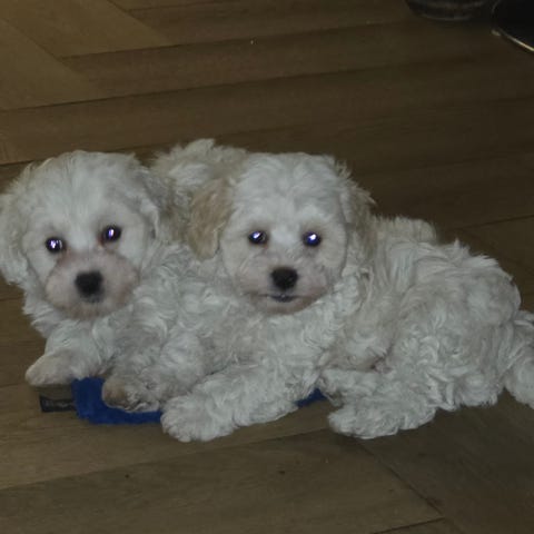 Moren er pomeran/papillon og vejer 2.5 kg. Faren er rød toypuddel(Charlie fra kennel Lillebassumgaard.dk) og vejer 3 kg.