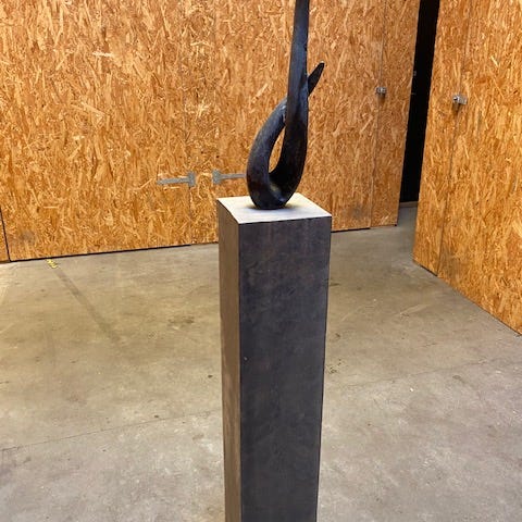 Buste skulptur i metal på marmorsokkel
