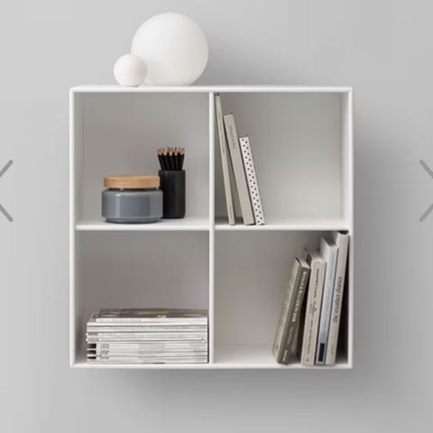 Reol måler 35 cm høj, 30 dyb og 35 bred. Sælger også et modul mere som passer til og en tillægsplade til oven på.