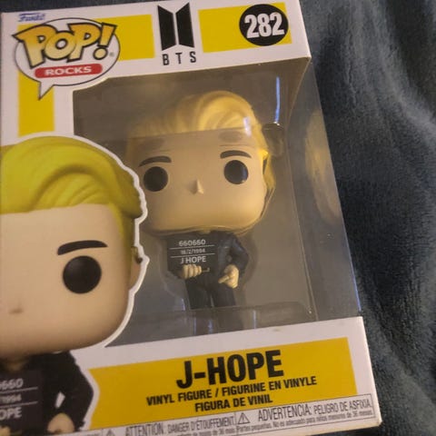 Funko Pop Rocks BTS vinylfigurer med motiverne Jimin (nr. 222), Jung Kook (nr. 224), J-Hope (nr. 282), V (nr. 223) og Suga (nr. 222). Figurerne er fremstillet i vinyl og leveres i individuelle samleræsker med vindue. Velegnet som samlerobjekter eller udstillingsfigurer for fans af BTS og Funko Pop-serien.