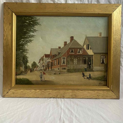 Fremstår i god antik stand med aldersrelateret patina. Let krakelering i overfladen samt brugsspor på rammen, hvilket er forventeligt for et værk fra 1910. Lærredet virker stabilt.