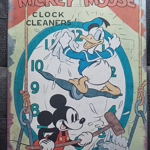 Walt Disney. Metal skilt med Anders And og Mickey Mouse.