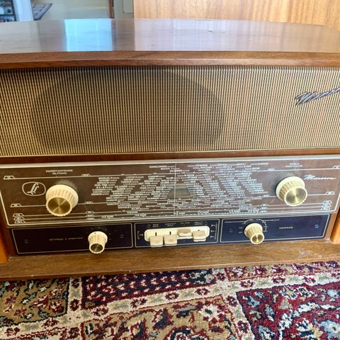 Gammel LL Kardinal 5612 radio i rimelig pæn stand. Radioen fungerer rimeligt på FM. Den har i mange år stået i en privat samling i et tørt opvarmet rum. Den har været delvist adskilt og rengjort. Desværre var det nødventigt at skifte højttalerstoffet da det var mørnet og hullet. Mål: B: 68 H: 42 D: 30. Vægt 18,5 kg. Den vil være vanskeligt at sende den men den kan udbriges i det midtjyske. Betaling, kontant eller mobilepay.