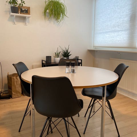 Rund spisebord sort træ med søjlefod
