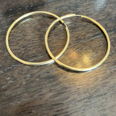 Ægte guldøreringe i 8 kt. D 48 mm og kraftig Trådtykkelse på 2,5 mm. Helt nye og faktura kan udskrives. Har flere størrelser. Butikspris 3000-3800.