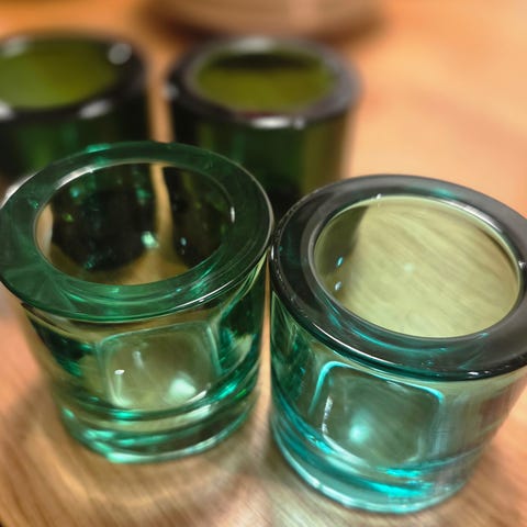 Marimekko skål på fod i ravfarvet glas. Skålen er udført i presset glas med rillet og prikket mønster samt bølget kant. Den står på en rund, riflet fod, som giver god stabilitet. Velegnet som serveringsskål til slik, snacks, frugt eller som dekoration. Marimekko-logo er indstøbt i glasset i bunden af skålen.