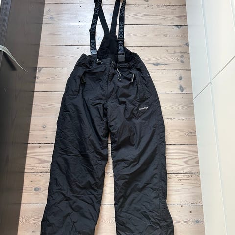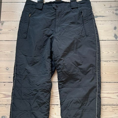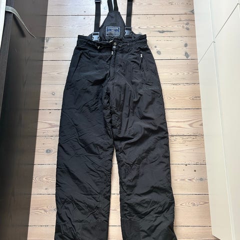 med seler, Performance wear, outdoor skibukser, overtræksbukser, sort, 2 lynlås lommer, snefang, brugt få gange.