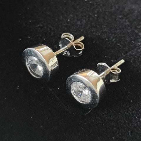 Sølvørestikkere med små slebne sten isat en cirkel. Flotte.