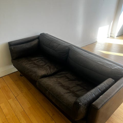 Sofaen fremstår: Affedtet, Dybderenset, Nav-sværtet & behandlet med Læderbalsam/fedt.