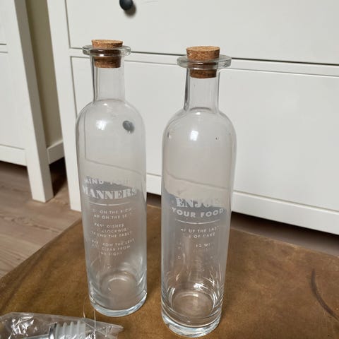 Eddike- og oliebeholdere fra IKEA med stativ til at stå eller hænge op