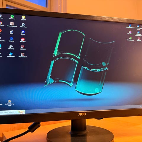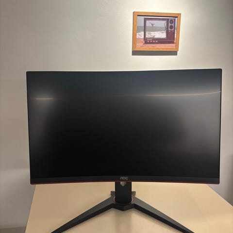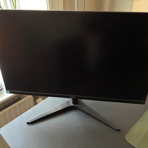AOC skærm med en skærmstørrelse på 24 tommer. Velegnet som computerskærm til almindeligt kontorbrug, studie eller hjemmebrug. Skærmen har et moderne design med smal ramme og står på en fod, der kan placeres på skrivebord.