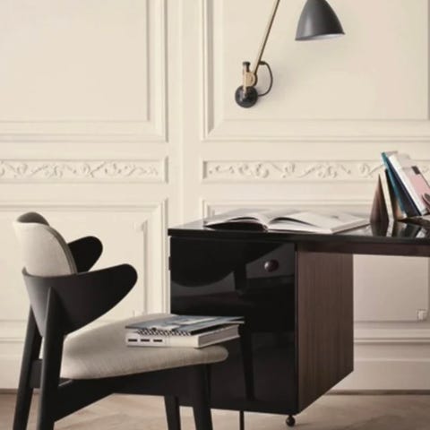 Bestlite BL5 Wall Lamp med skærm og vægbeslag i lakeret aluminium, arm i krom samt ledning i stof fra GUBI.