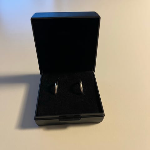 Små creoler i 14 kt guld. D 17 mm, tråd 1,3 mm. Nye. Kommer i smykkeæske og faktura udskrives. Har også D 9, D 11, D 13 og D 15 mm.