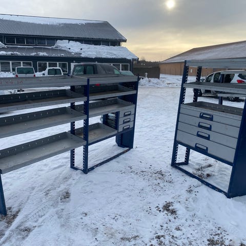 Reolsæt fra Tyske Plastipol-Scheu til stor varevogn MB Sprinter / Peugeot Boxer / Citroën Jumper / MAN / VW Crafter / Nissan NV400 / Opel Movano / Renault Master eller lign.